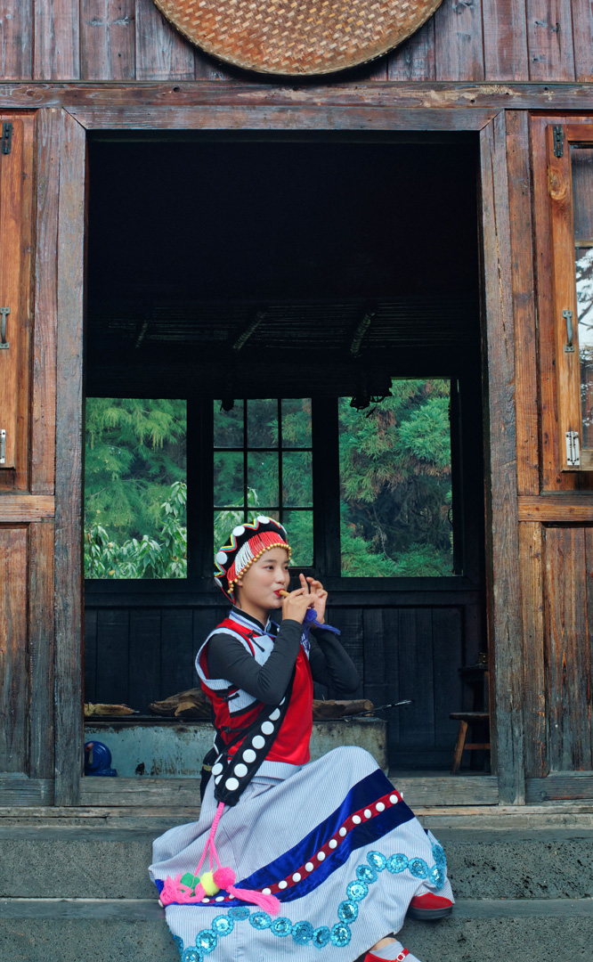 摩梭人是納西族的一個支系,多聚居在寧蒗縣永寧鄉(xiāng)的瀘沽湖畔,人口約8萬。摩梭民居就地取材,用圓木橫壘為墻,建成合院式寨樓居住,這類井干式建筑又稱木楞房,具有較好的御寒保溫性能,體現(xiàn)了順應(yīng)自然的生態(tài)觀。摩梭人保留了母系大家庭的基本形態(tài),呈現(xiàn)在您眼前的是一個完整的摩梭家庭的四合院,由正房、經(jīng)堂、花樓、門樓等構(gòu)成,正房坐北朝南,通稱祖母房。居住一家中最年長的女性,同時也是一大家人飲食、待客、議事的核心場所...